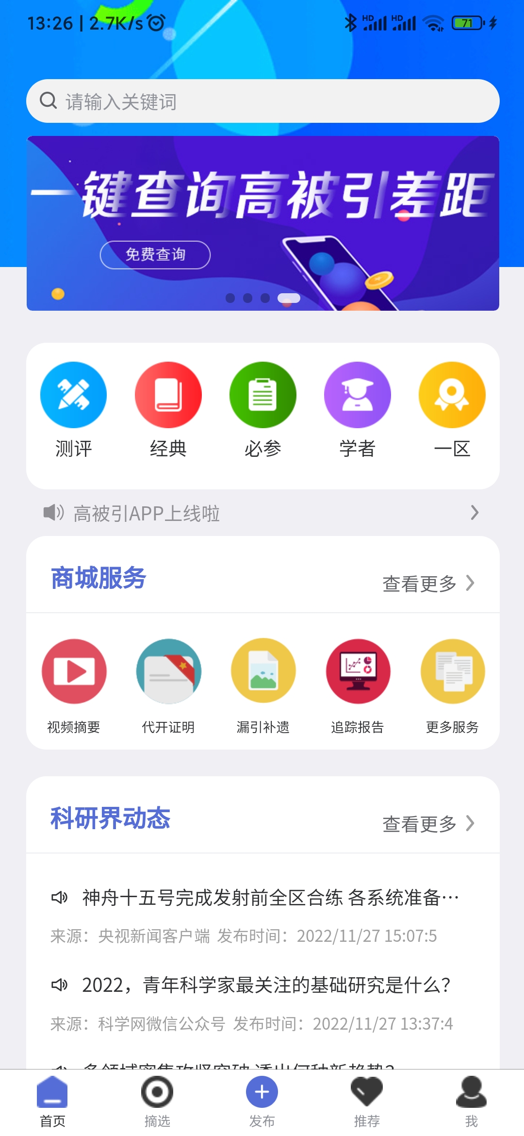高被引APP是基于大数据与互联网技术,在信息共享精神下,用于分享已经发表的论文信息,传播科研成果的平台。用户可以在此平台上发布视频摘要、语音摘要等,介绍、推广研究成果,扩大学术影响力,也可以查询重要文献、收藏、分享,为科学研究提供帮助,进而提升学术交流的广度与深度。